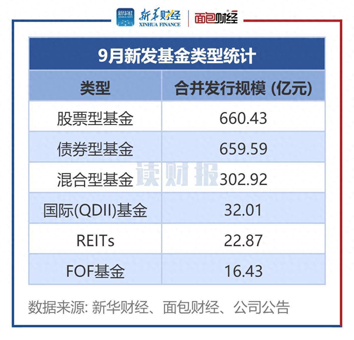 从产品发行结构来看,9月股票型基金发行规模最大,达到660.43亿元。债券型基金发行规模紧随其后,为659.59亿元。9月混合型基金发行规模达到302.92亿元。FOF基金发行规模相对较小,规模为16.43亿元。